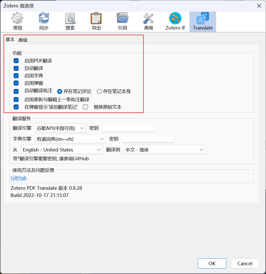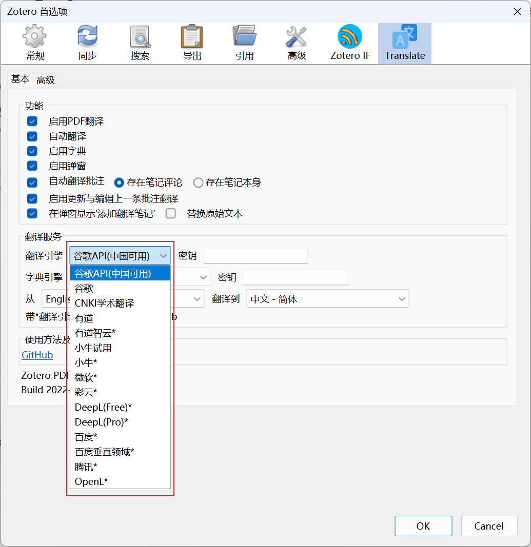 将上述复制的密钥,粘贴至Zotero中翻译引擎对应的密钥栏中即可。
