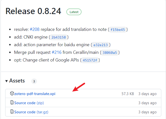 直接选择“zotero-pdf-translate.xpi”文件进行下载。